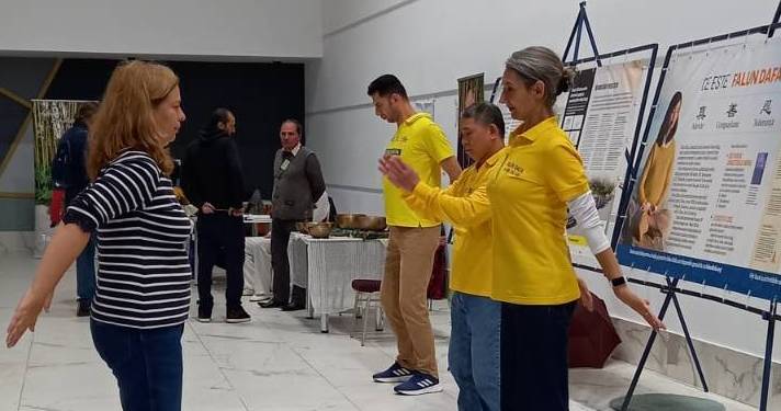 一位學員說:「活動最後一天我們去展位時,看到瑪利亞跑著追過來,說:『 我還以為你們已經開始了!』她幾乎全程都和學員們在一起,並且從頭到尾都堅持煉功。離開時,我們互相道別,她說:『 我很高興認識你們。』我告訴她要繼續煉功,她也答應了。這是一次非常特別的相遇。」