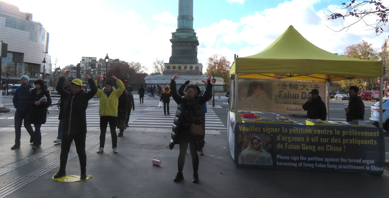 ![]() 圖1~3:十一月三十日星期日上午,法輪功學員在巴黎巴士底廣場舉行了弘法講真相活動。 |