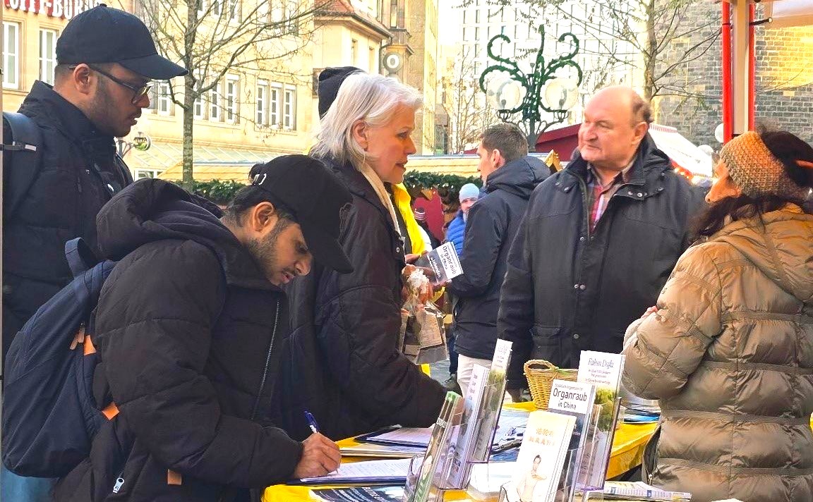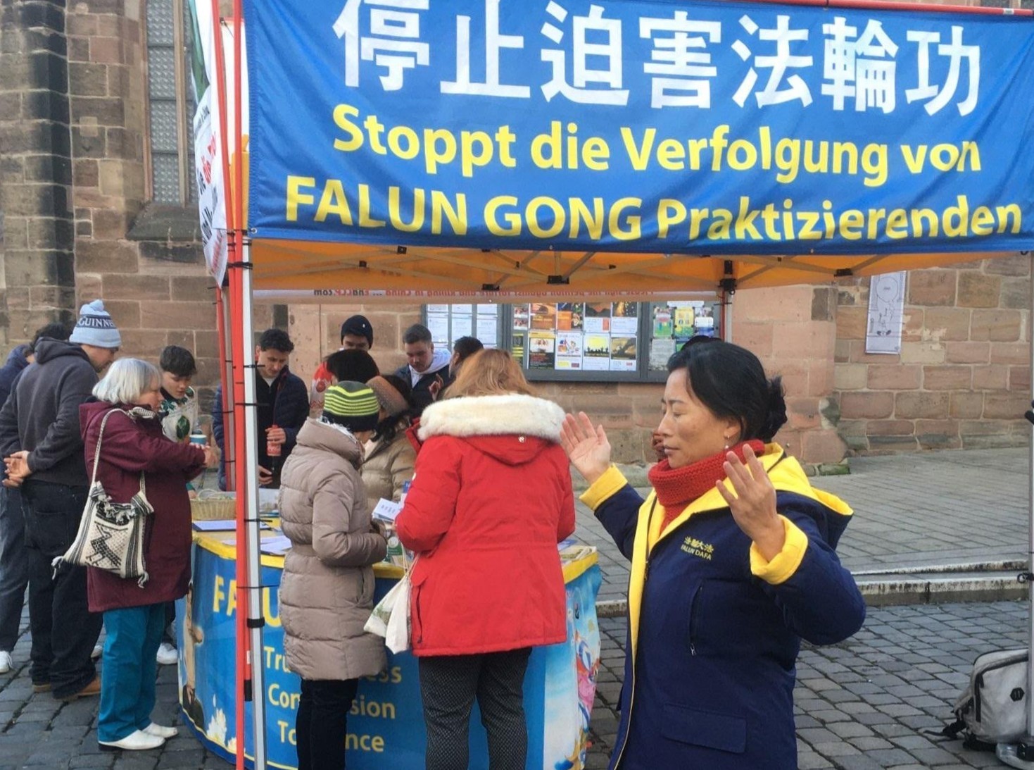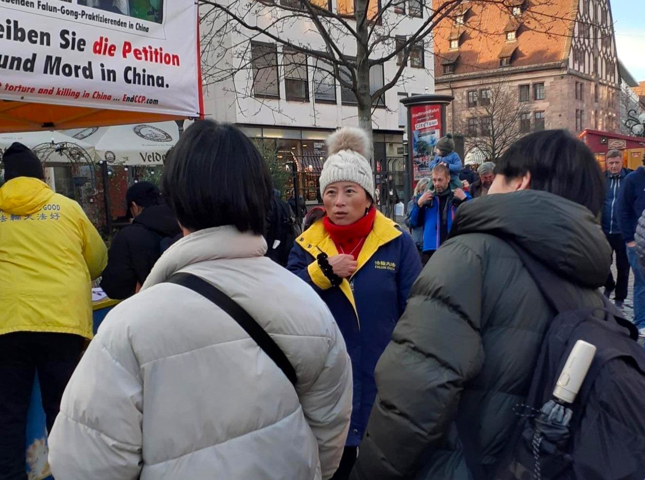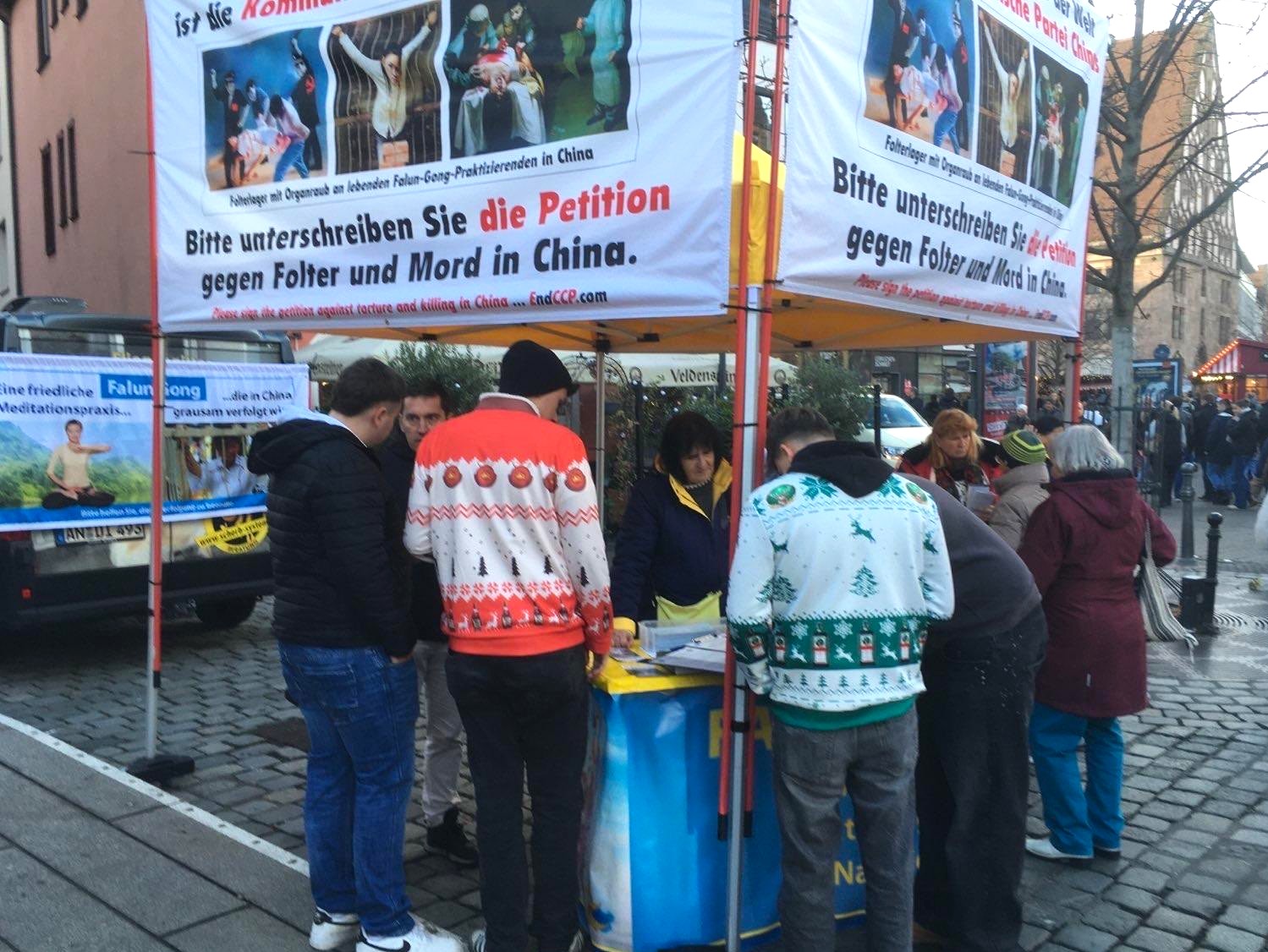 聖誕節前的最後一個週末,舉世聞名的紐倫堡聖誕天使市場還吸引了眾多遊客來到這座城市,大量民眾在擺出的請願書上簽名,支持法輪功學員反對中共迫害。