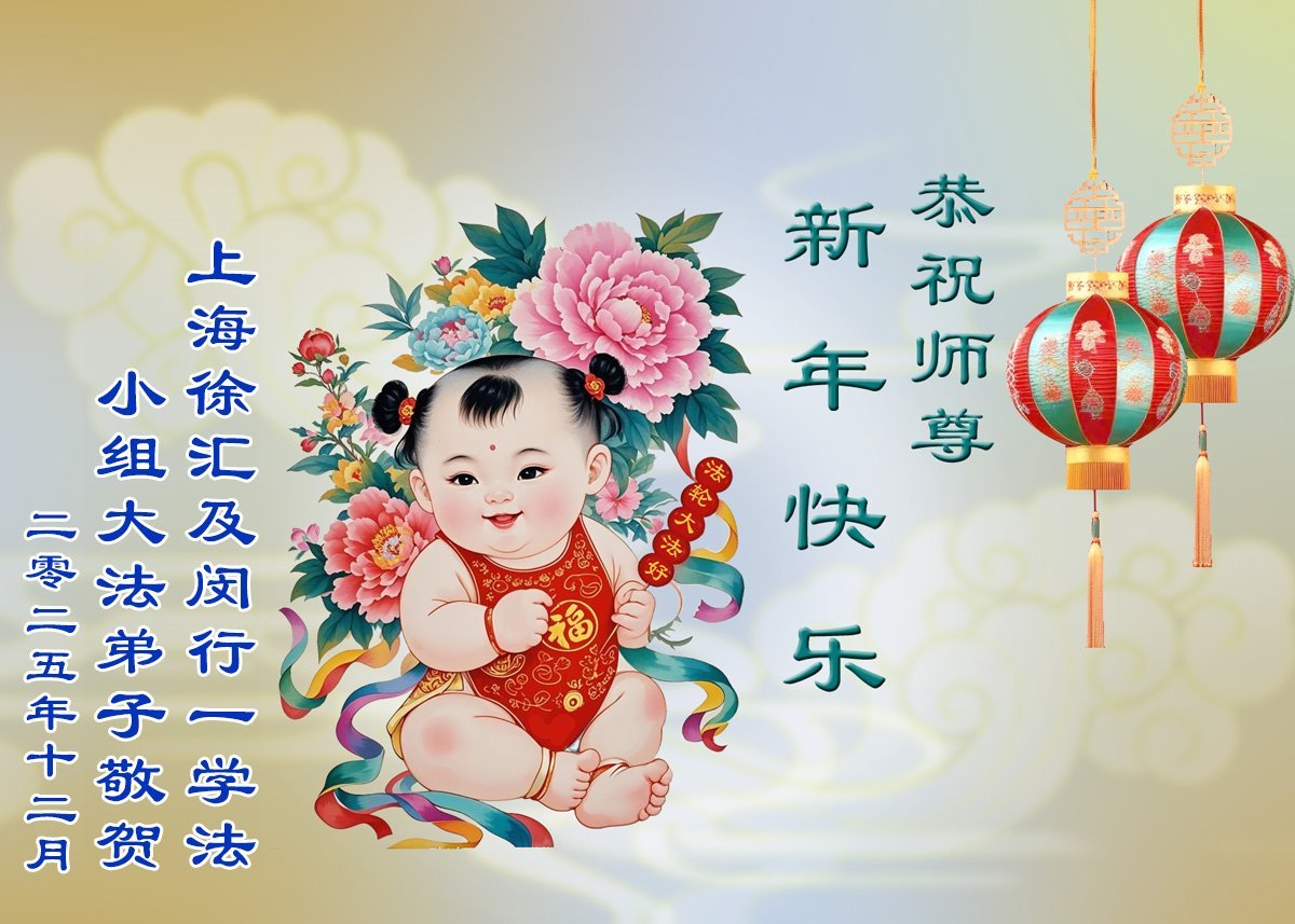 上海市閔行區一學法小組大法弟子恭祝慈悲偉大的師尊2026年新年快樂!