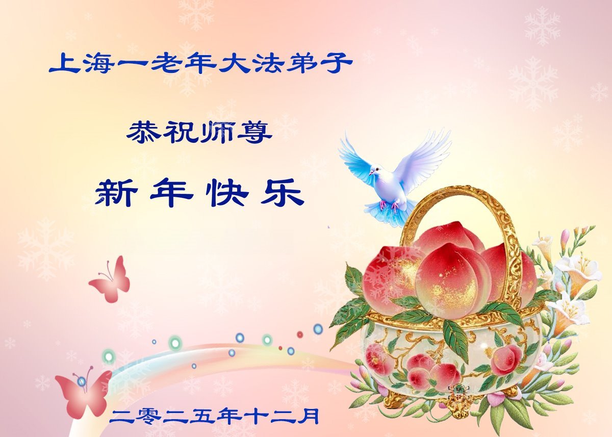 上海一老年女大法弟子恭祝師尊元旦快樂!