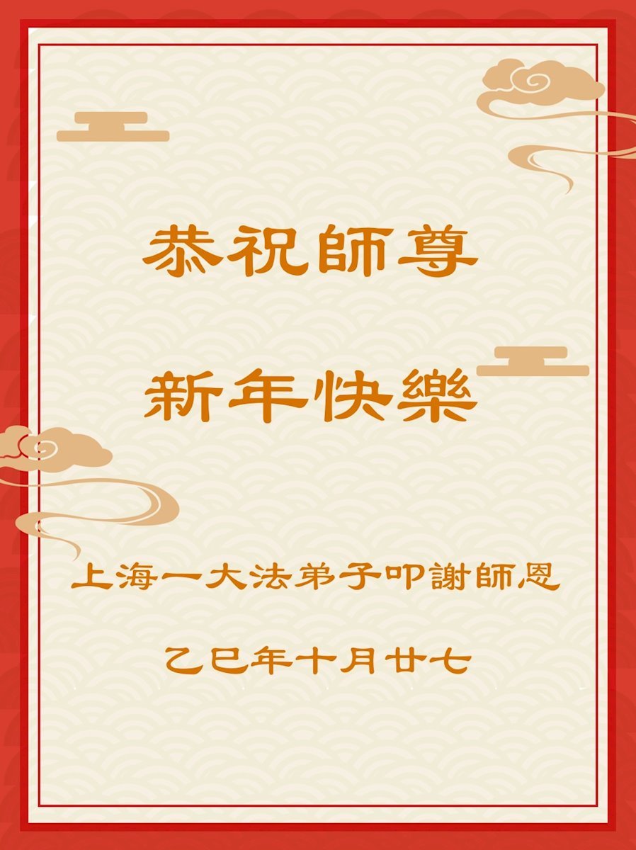 上海市一大法弟子恭祝慈悲偉大的師父新年快樂!
