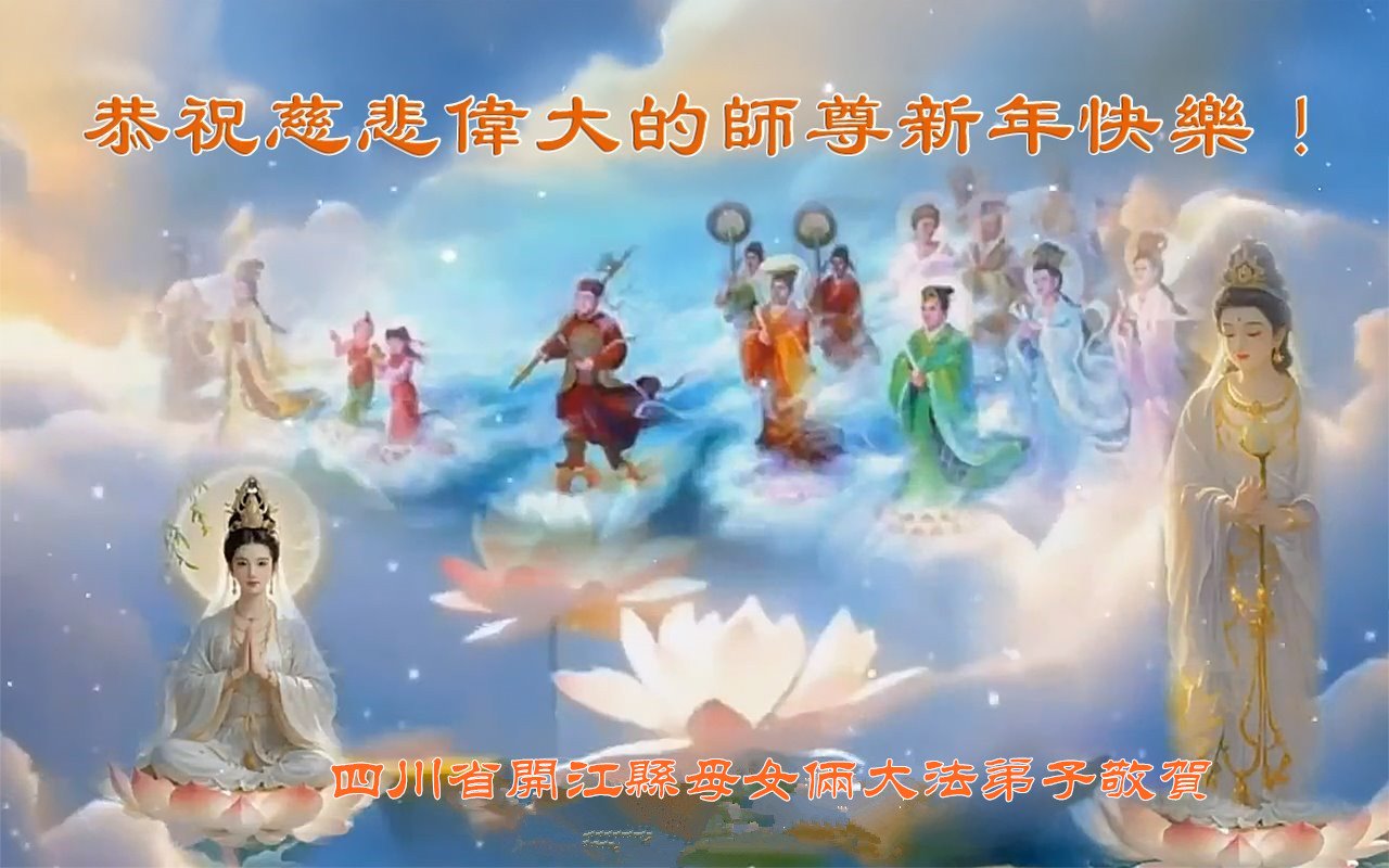 恭祝慈悲偉大的師尊新年好!您辛苦了!新的一年到來之際,感恩師尊的慈悲保護與救度!我們會繼續整體配合,學好法,做好三件事,多救世人,不負師恩。