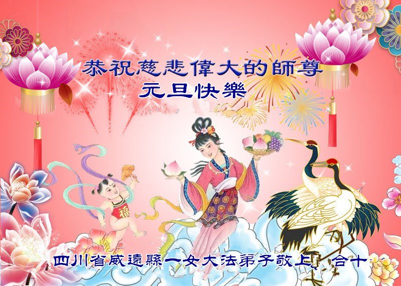 四川省內江市威遠縣一女大法弟子恭祝慈悲偉大的師尊元旦快樂!