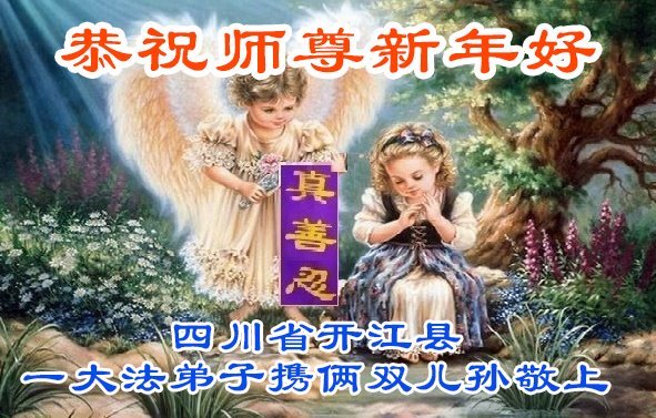 四川省達州市開江縣一大法弟子攜兩雙兒孫恭祝師父新年好!