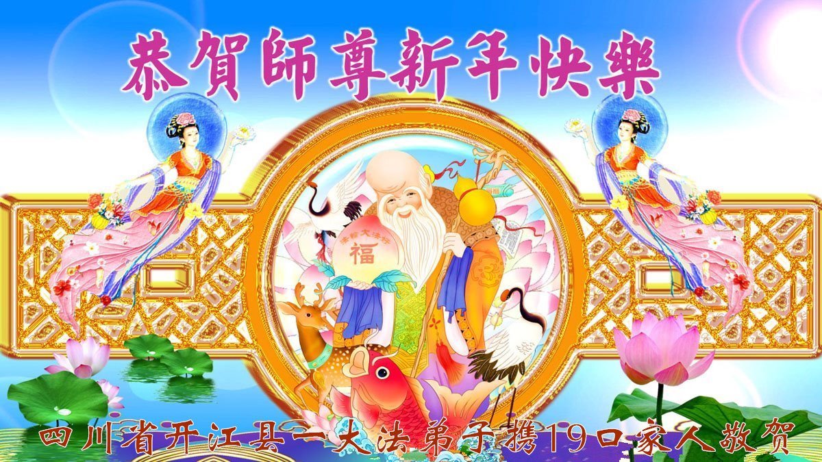 四川省達州市開江縣一大法弟子攜五口家人恭祝恩師新年快樂!