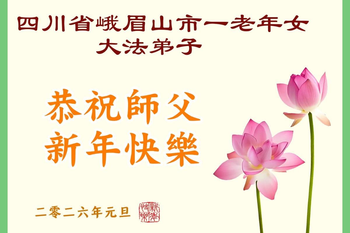四川省樂山市峨眉山市一老年女大法弟子恭祝師父新年快樂!