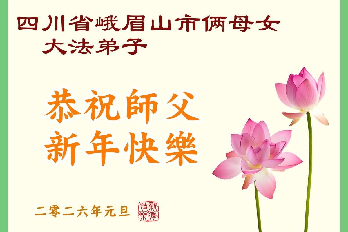 四川省樂山市峨眉山市母女倆大法弟子恭祝師父新年快樂!