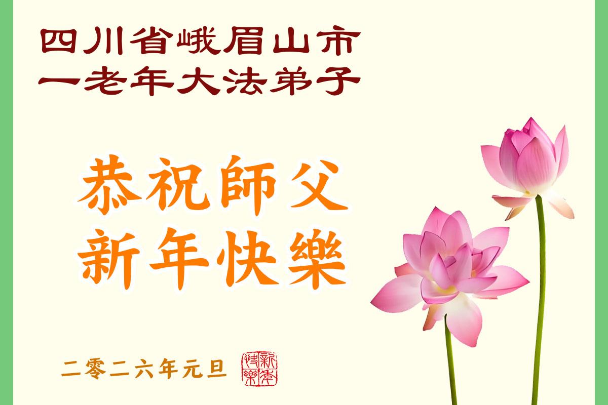 四川省樂山市峨眉山市一老年大法弟子恭祝師父新年快樂!
