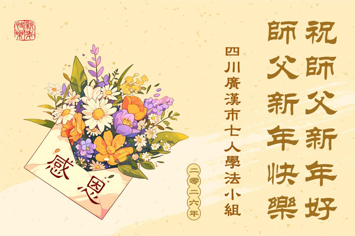 四川省德陽市廣漢市七人學法小組大法弟子恭祝師尊新年快樂!