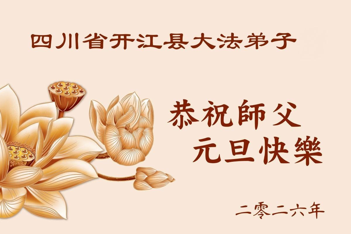 四川省達州市開江縣一兩人學法小組大法弟子恭祝師尊新年快樂!