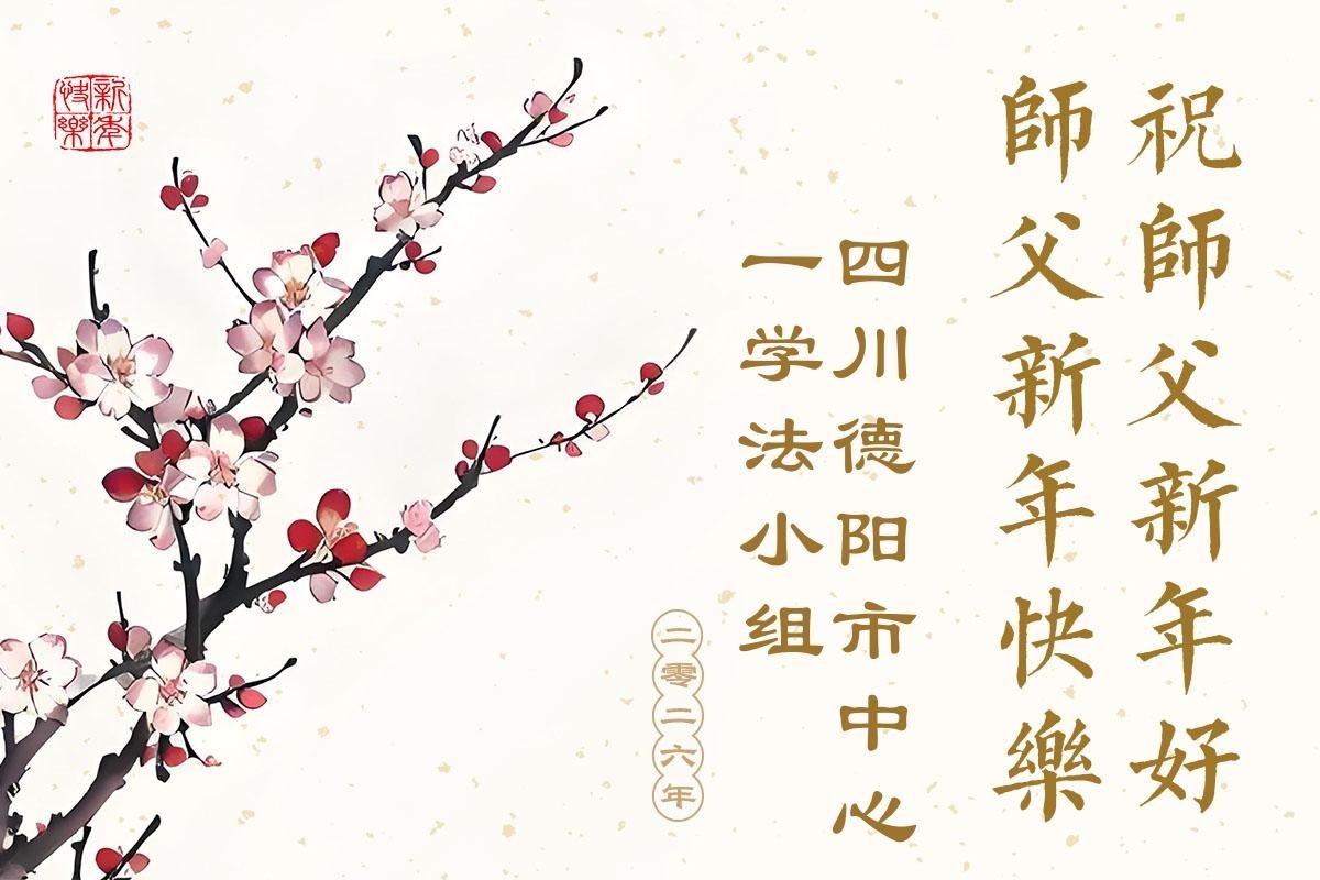 四川德陽市中心一學法小組大法弟子恭祝師父新年好!新年快樂!