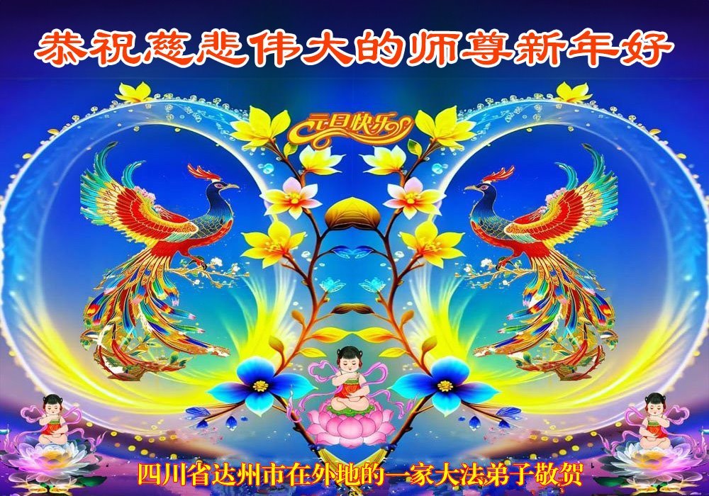 四川省達州市在外地的一家大法弟子恭祝慈悲的師尊元旦快樂!