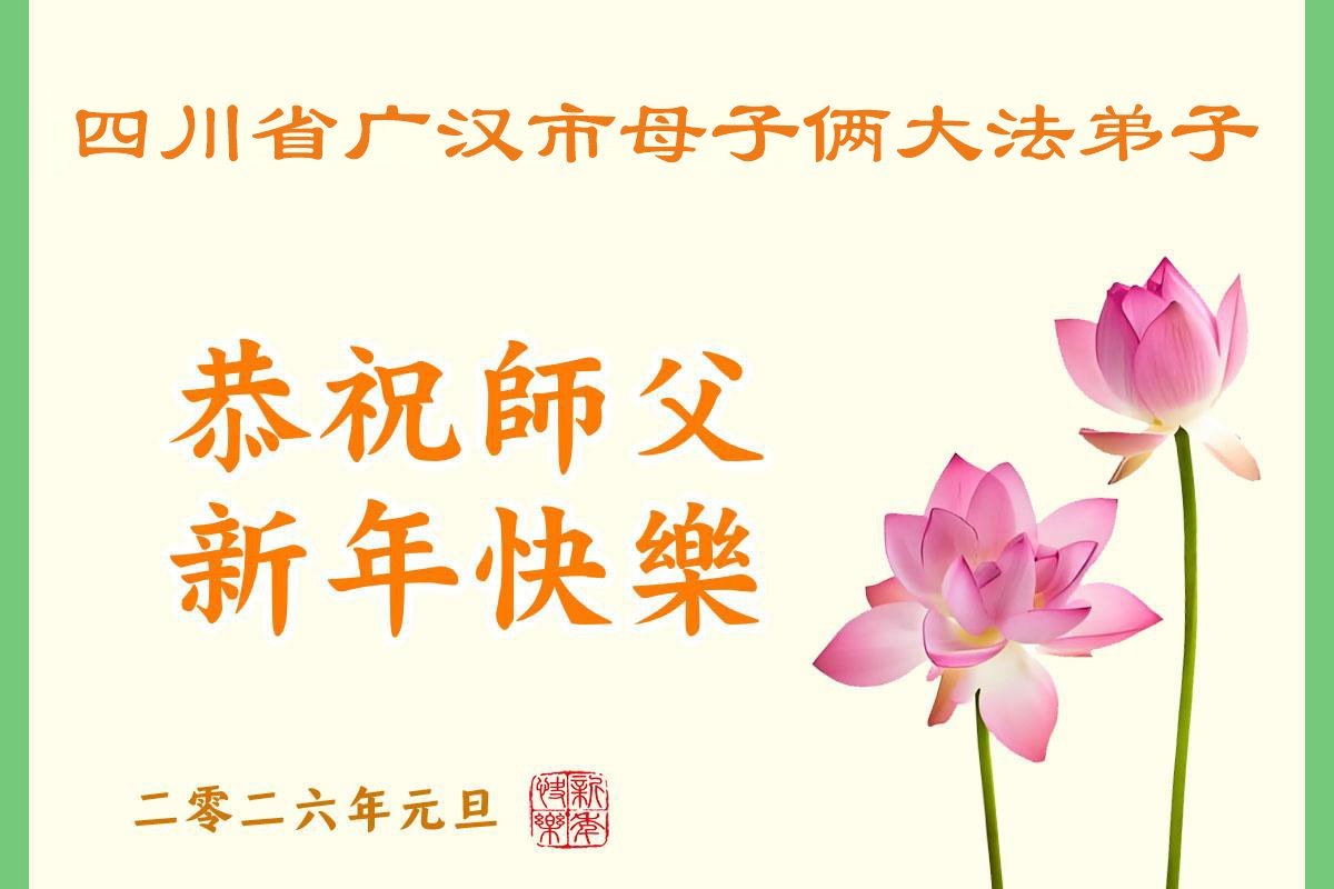四川省德陽市廣漢市母子倆大法弟子恭祝師尊新年快樂!