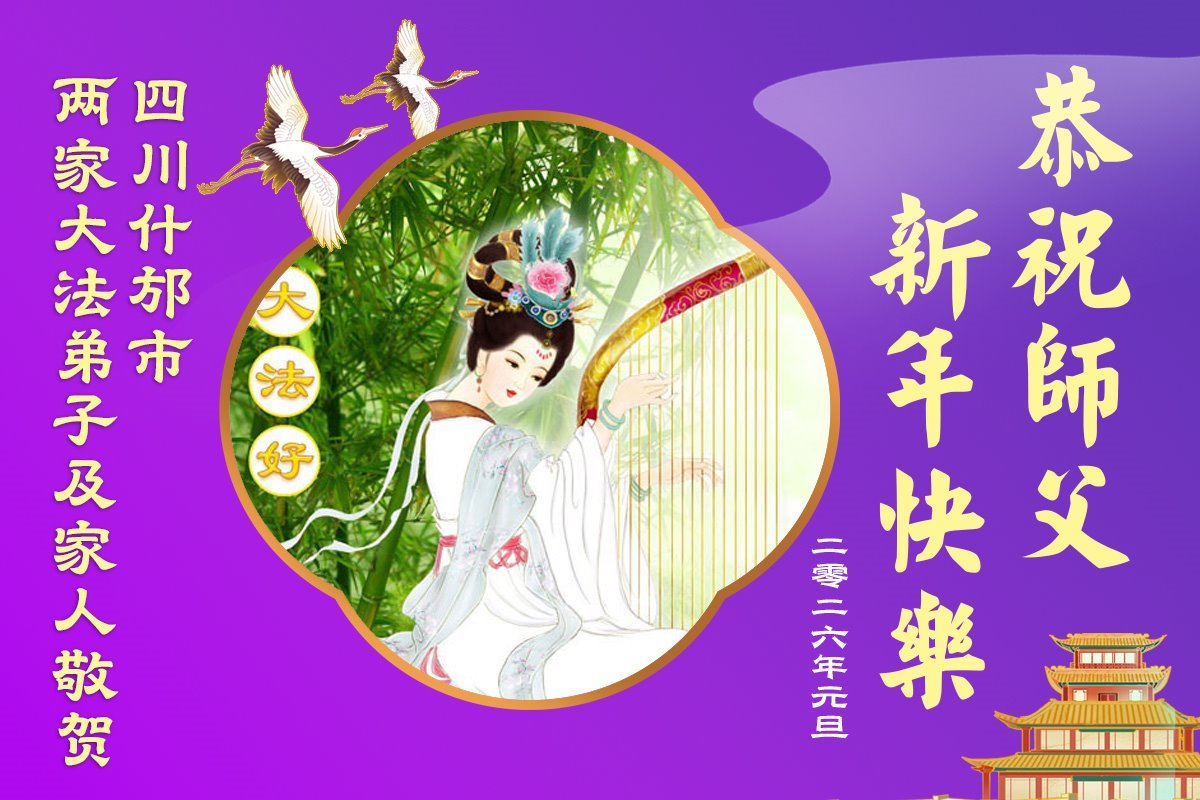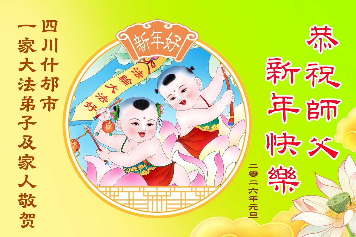 四川省德陽市什邡市兩家大法弟子及家人恭祝師父新年快樂!