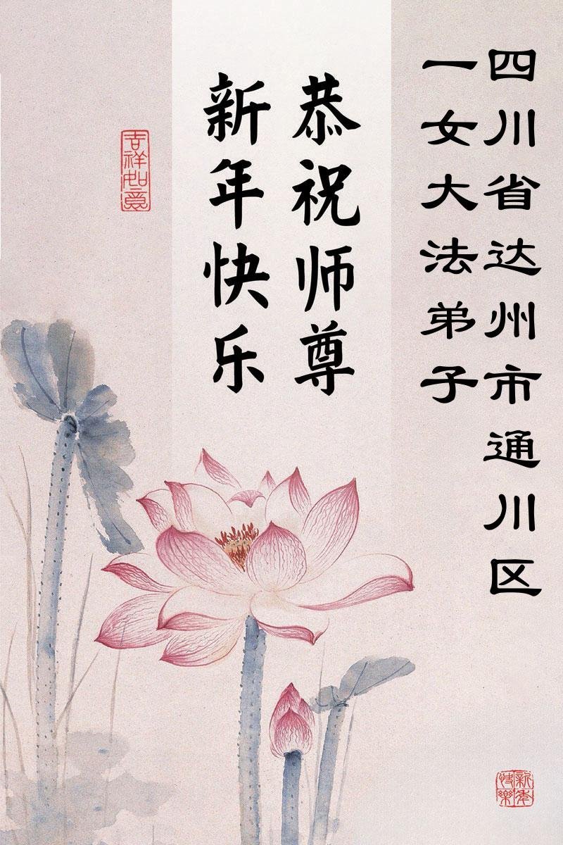 四川省達州市通川區一女大法弟子恭祝師尊元旦快樂!