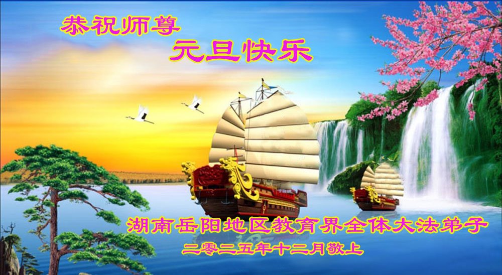 湖南省岳陽地區教育界全體大法弟子恭祝慈悲偉大的師尊元旦快樂!