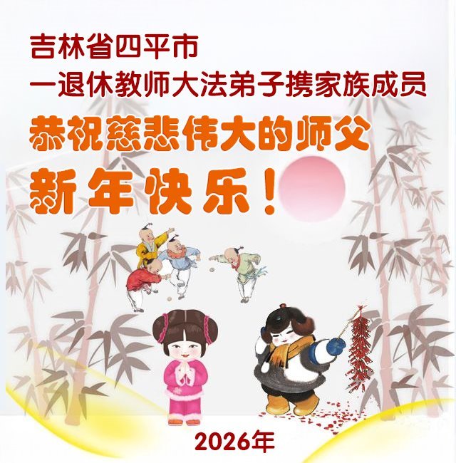 吉林省四平市一退休教師大法弟子攜家人恭祝師尊新年快樂!
