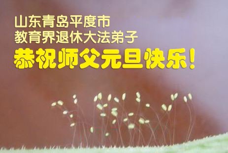 山東省青市島平度市一教育界退休大法弟子恭祝師父元旦快樂!