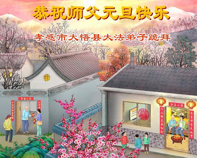 湖北省孝感市大悟縣大法弟子恭祝師父元旦快樂!
