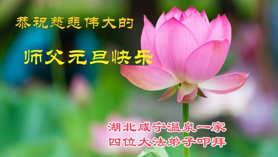 湖北省咸寧市咸寧溫泉一家四位大法弟子恭祝慈悲偉大的師父元旦快樂!