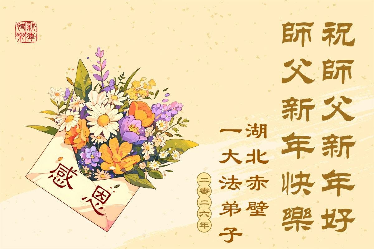 恭祝師尊新年好!非常感恩師尊的慈悲救度,弟子們有決心學好法,修好自己,努力做好三件事,不辜負師尊的慈悲苦度。