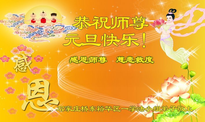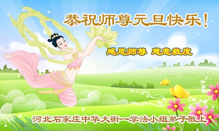 河北石家莊市中華大街一學法小組大法弟子恭祝師尊元旦快樂!