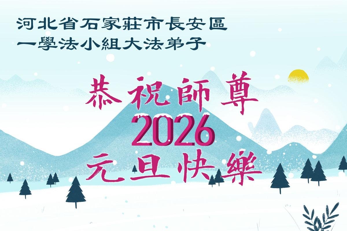 河北省石家莊市長安區一學法小組全體大法弟子恭祝師尊元旦快樂!