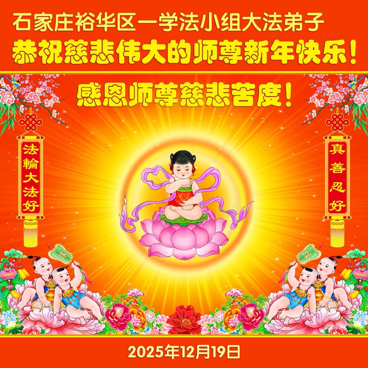 河北省石家莊裕華區一學法小組大法弟子恭祝慈悲偉大的師尊新年快樂!