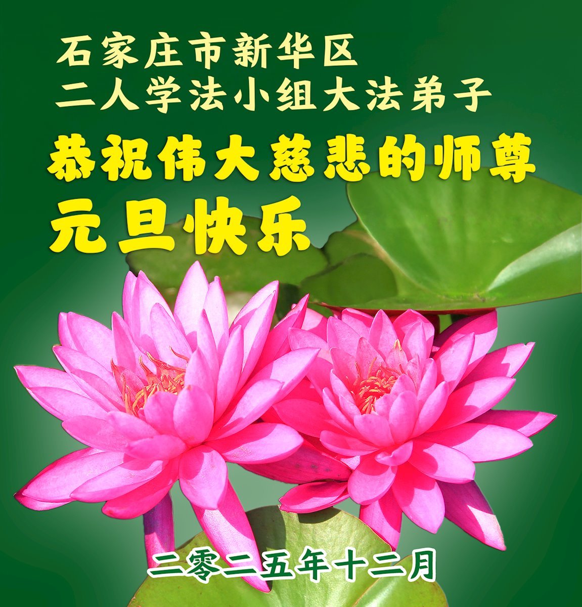 河北省石家莊市新華區兩人學法小組大法弟子恭祝師尊元旦快樂!