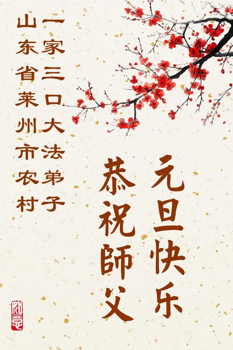 山東青島萊西市鄉村一學法小組大法弟子恭祝師尊新年快樂!