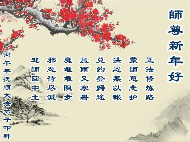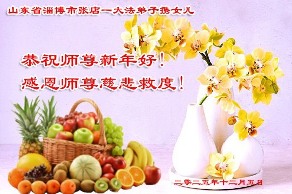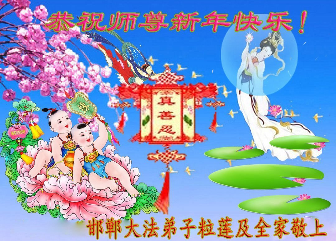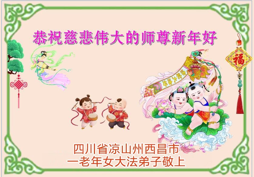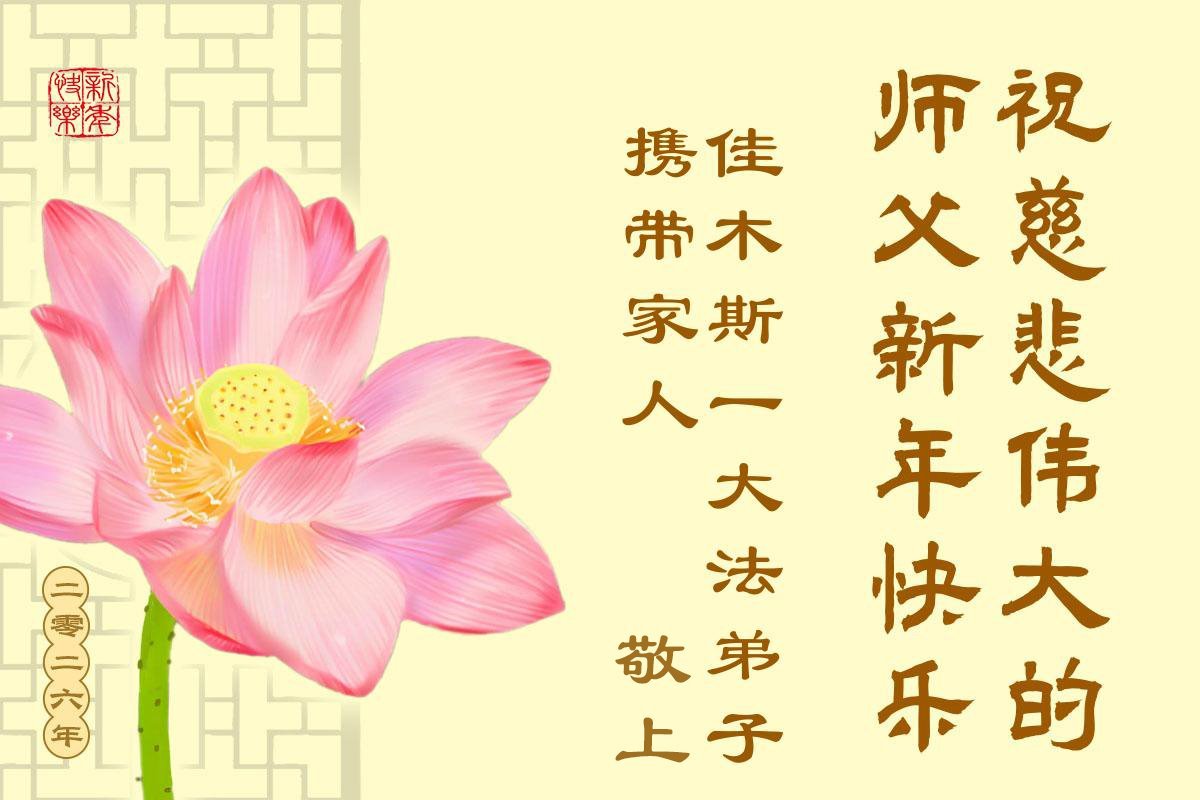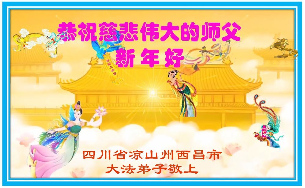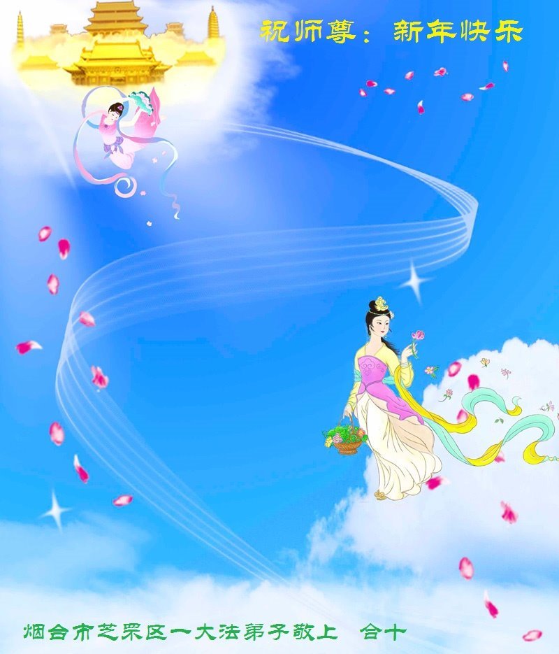 無量慈悲偉大的師尊您好,您辛苦啦!新的一年到來之際,弟子們感恩師尊的慈悲保護與救度,也替得救的世人轉達對師尊慈悲救度的無限感恩!在師尊用巨大的承受與付出所延續來的不多的時日裏,弟子們一定珍惜時間,多學法,同化法,互相配合好形成整體做好三件事,多救世人,不辜負師尊的慈悲苦度!