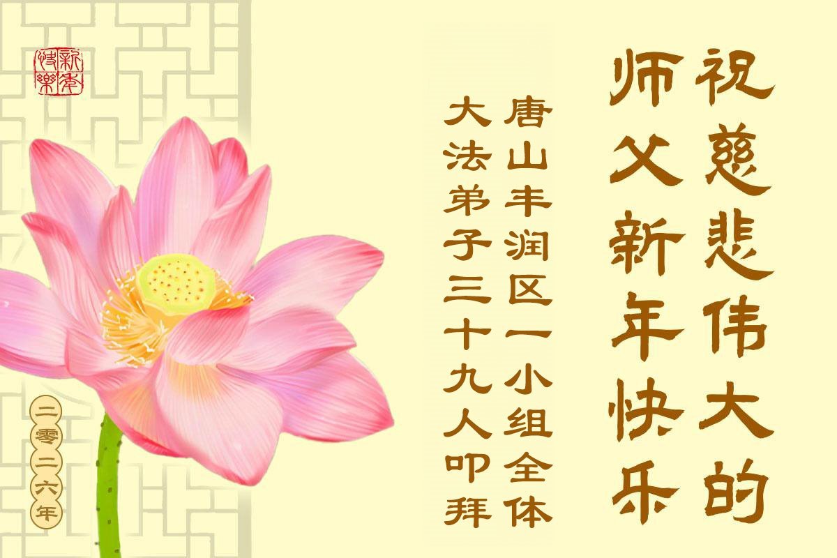 下面是部份來自建材、文藝界、教育、黃金、水利、橋樑、衛生、油田、石化、絲綢、維修、燃氣、船舶、音樂界、金融、鐵路、高校、外貿、商業、交通、醫藥、科研、銀行、會計師、林業、企業(管理)、農場、農墾、機車、供銷、人力資源、地勘、文教、建築、通訊、紡織、服務、環境藝術、軍工、電力、航天、電商、遊樂、電子技術研究、稅務、煤炭、郵政、航空、公用事業、財務、礦山、圖書館、工商界、出版、私營經營、房地產、招商、海關、自動化儀表、公安、檢察院、法院、司法、行政部門、軍隊等60餘行業大法弟子敬獻李洪志師父的新年問候。
