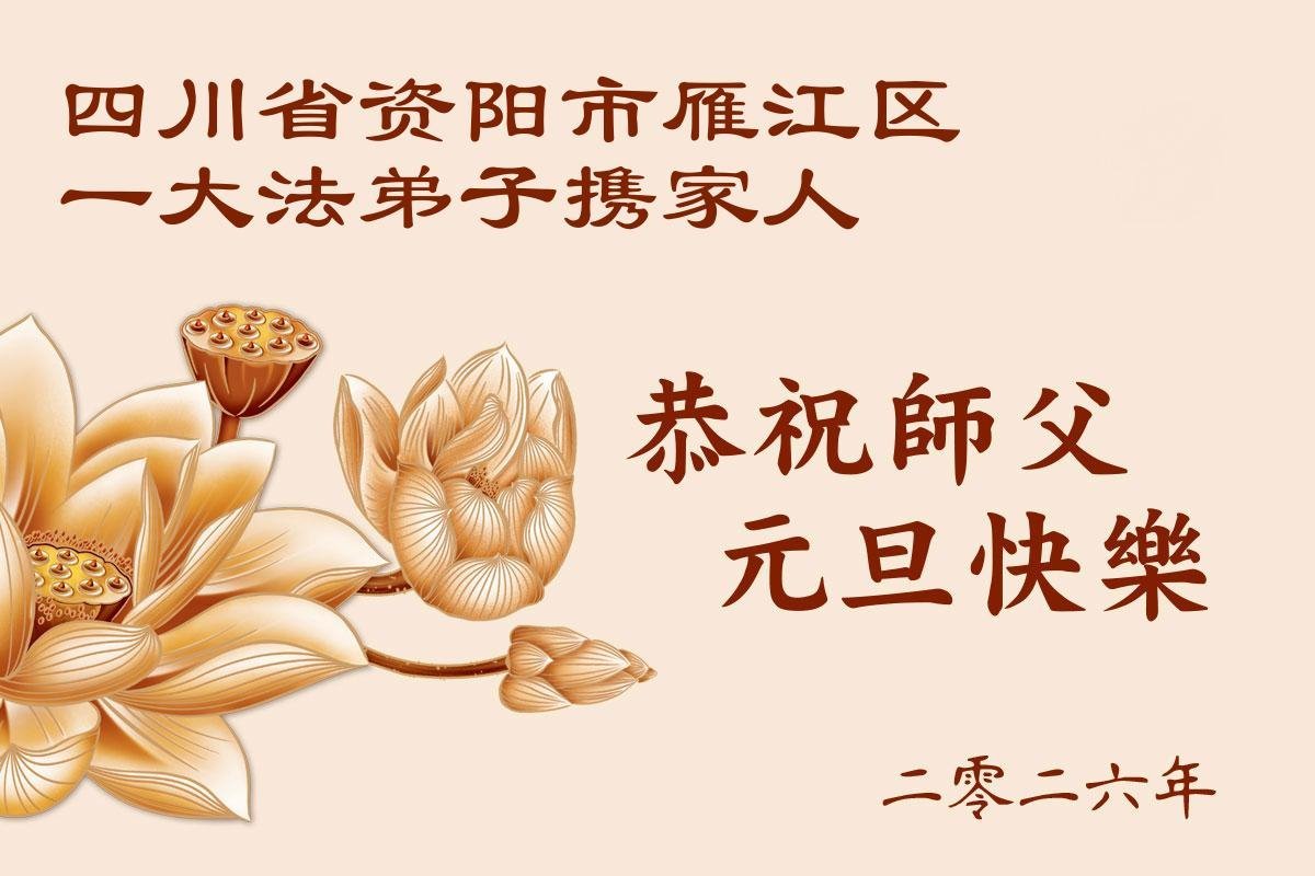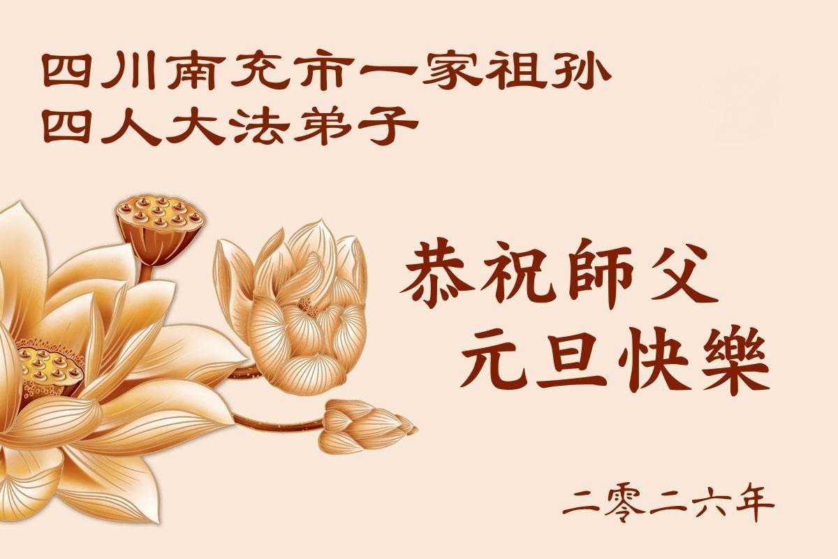 尊敬的師父好,師父您辛苦了!成都工商界大法弟子向師父問好,恭祝師父2026年元旦快樂!每學法深入一點,就更加能體會到師父為救眾生的巨大付出。世間一切皆為法而來,一切幻相皆為人心而設。願我們不為人心所動,走好最後的路,不負師父期望。弟子叩謝師父!