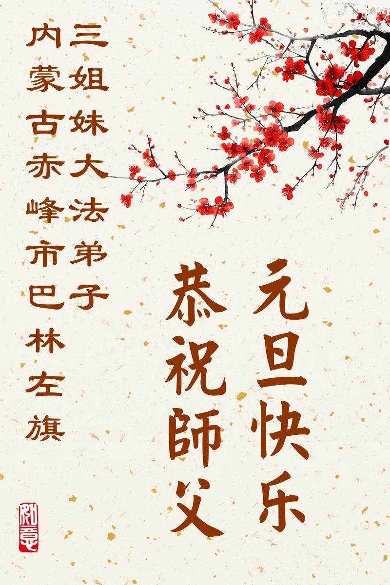 恭祝師尊新年快樂!我們全家人在師尊的保護下受益良多,千言萬語道不盡,弟子一定聽師尊的話,做好三件事,完成誓約,跟師尊回家,謝謝師尊!