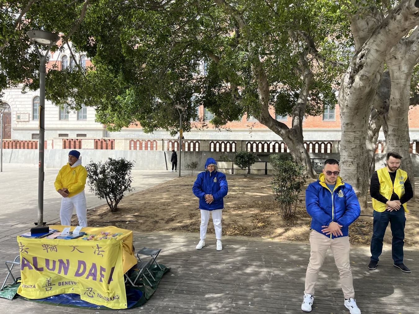 學員向市民及遊客展示功法傳遞法輪大法的美好,同時揭露中共迫害法輪功的真實情況,了解真相的人們紛紛在請願書上簽名支持法輪功反迫害。