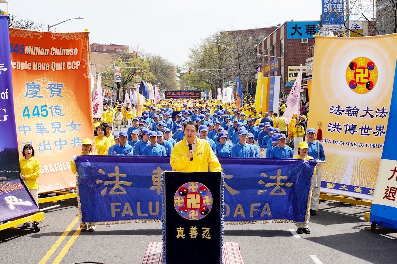 中國民主人權聯盟紐約地區負責人魏立斌表示,他七年前的四月來到美國,第一件事就是到全球退黨中心辦理了「三退」,並參加了當年紀念法輪功學員「四﹒二五」和平上訪的遊行和集會,就在同一地點,還接受了大紀元的採訪。