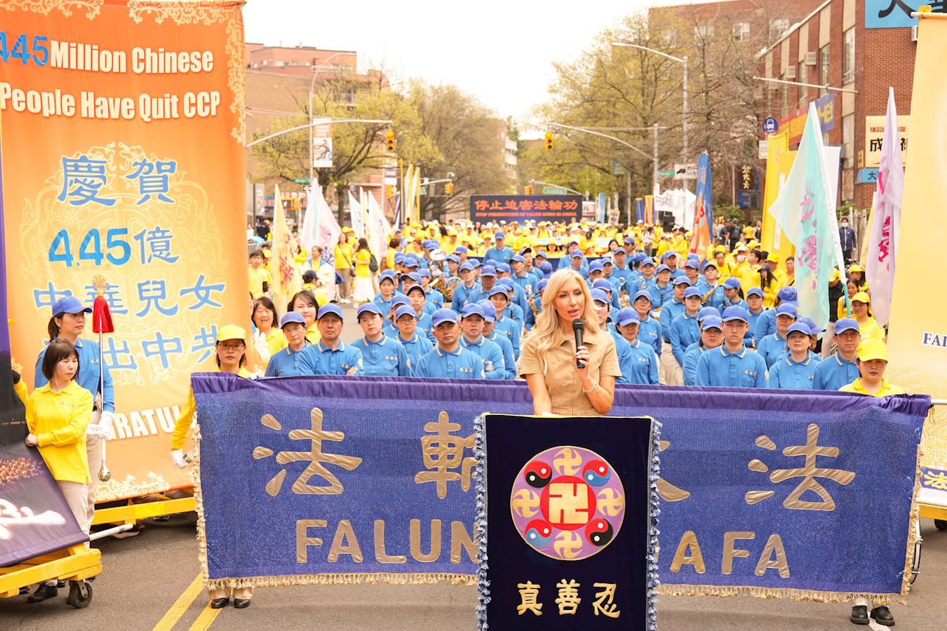 她還為紀錄片《國有器官》的導演和片中提到的受害者張雲祈禱,感謝他們勇敢揭露中共活體摘取器官的邪惡行徑。她說:「希望法輪功學員永遠記住內心的力量,並感謝你們自己,因為變革的潮流正在流動。因為你們,一步一步地,4.45億退出中共黨、團、隊的人,以和平、真實、慈悲和忍耐的名義,為人類挺身而出。」