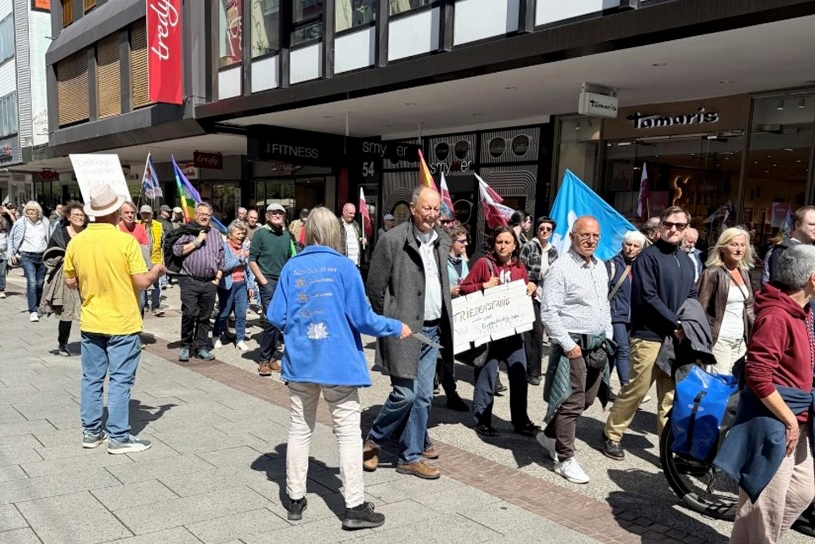 薩爾州首府薩爾布呂肯位於德國和法國的邊境。這裏,學員每週日都會在法德花園定期煉功。他們也定期在步行街設立信息台,希望能讓更多的市民及遊客了解到在中國正在發生著殘酷迫害法輪功學員的真實情況,且迫害時間已長達二十六年。