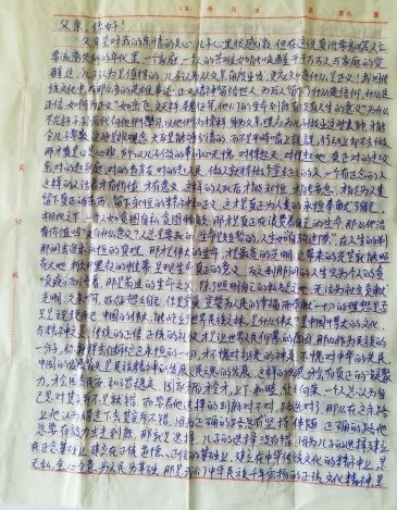 「父親是對我的親情的關心,兒子心裏很感激,但在這說真話要家破人亡、要流離失所的年代裏,一個家庭,一個人的苦難如能喚醒千千萬萬人與家庭的覺醒,兒子認為是值得的。」