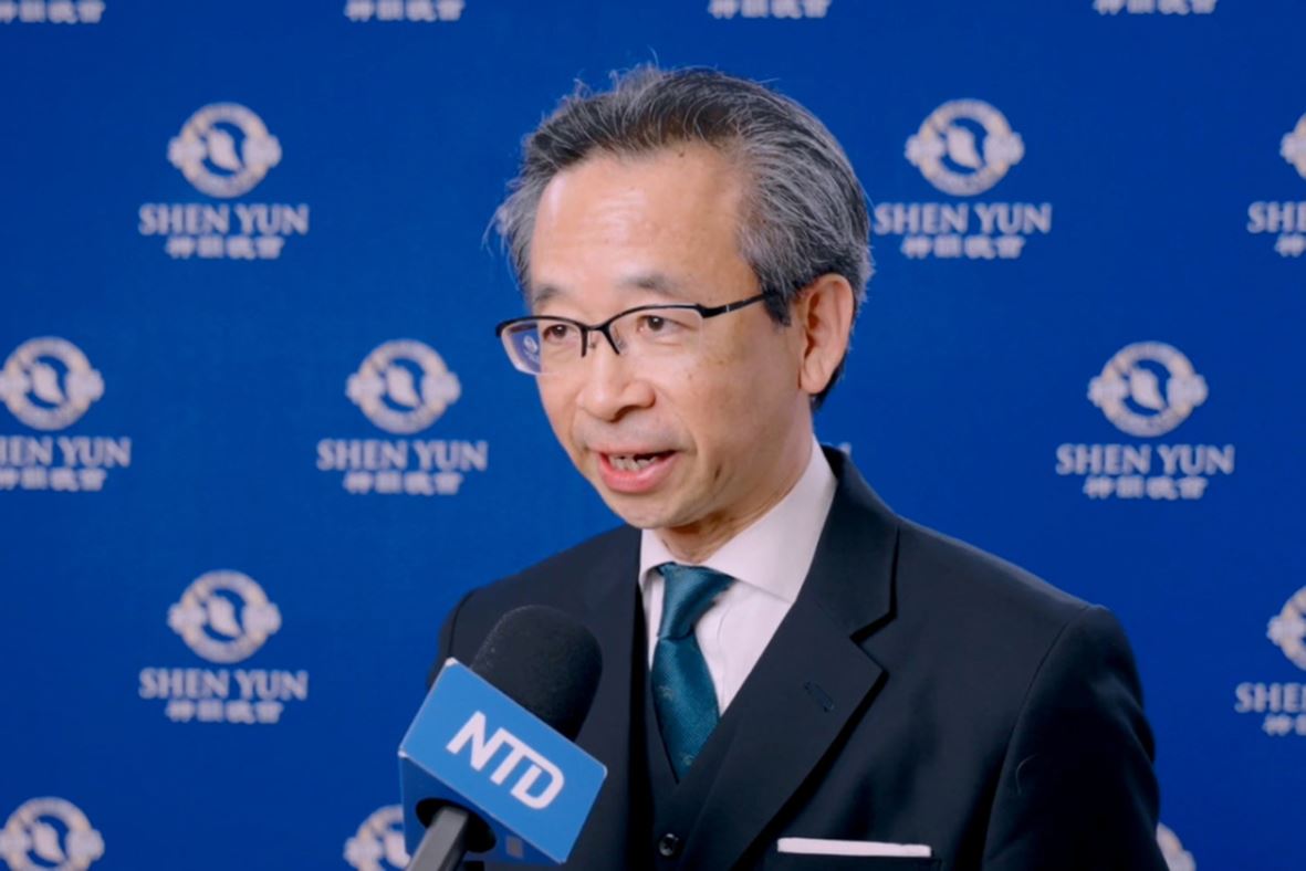 他還表示:「如果所有人都來看這場演出,都從中華文化、舞蹈、音樂中獲得心靈的安撫,也許世界上會少些戰爭,我虔誠許下這個心願,當下我們正經歷艱難時期,我想這樣的演出能給人們帶來福祉,世界應該按神韻的方向前行,這是正道。」