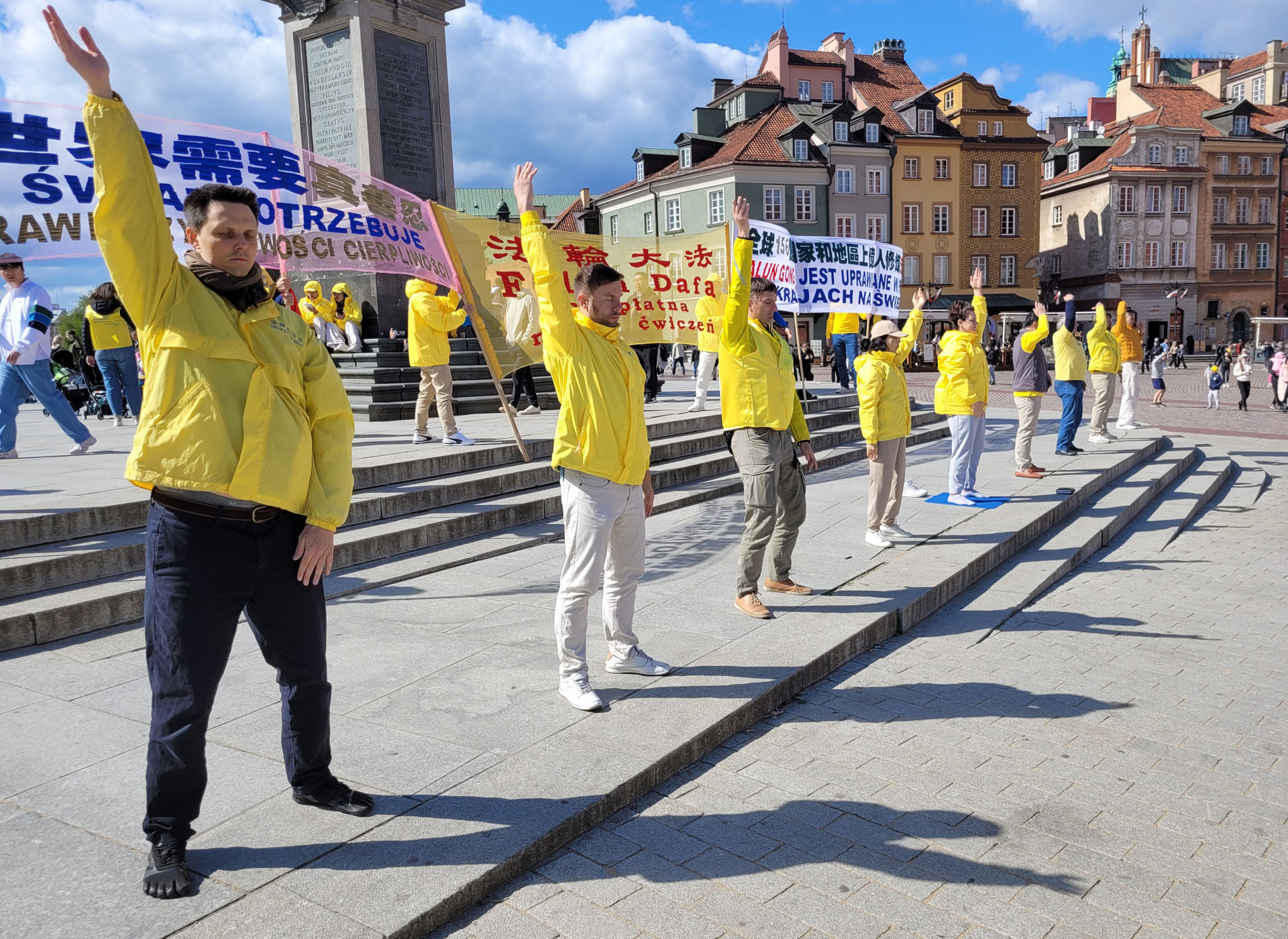 ![]() 圖2~5:波蘭法輪功學員在華沙古城廣場展示法輪功功法,發正念,感恩大法和大法師父。 |