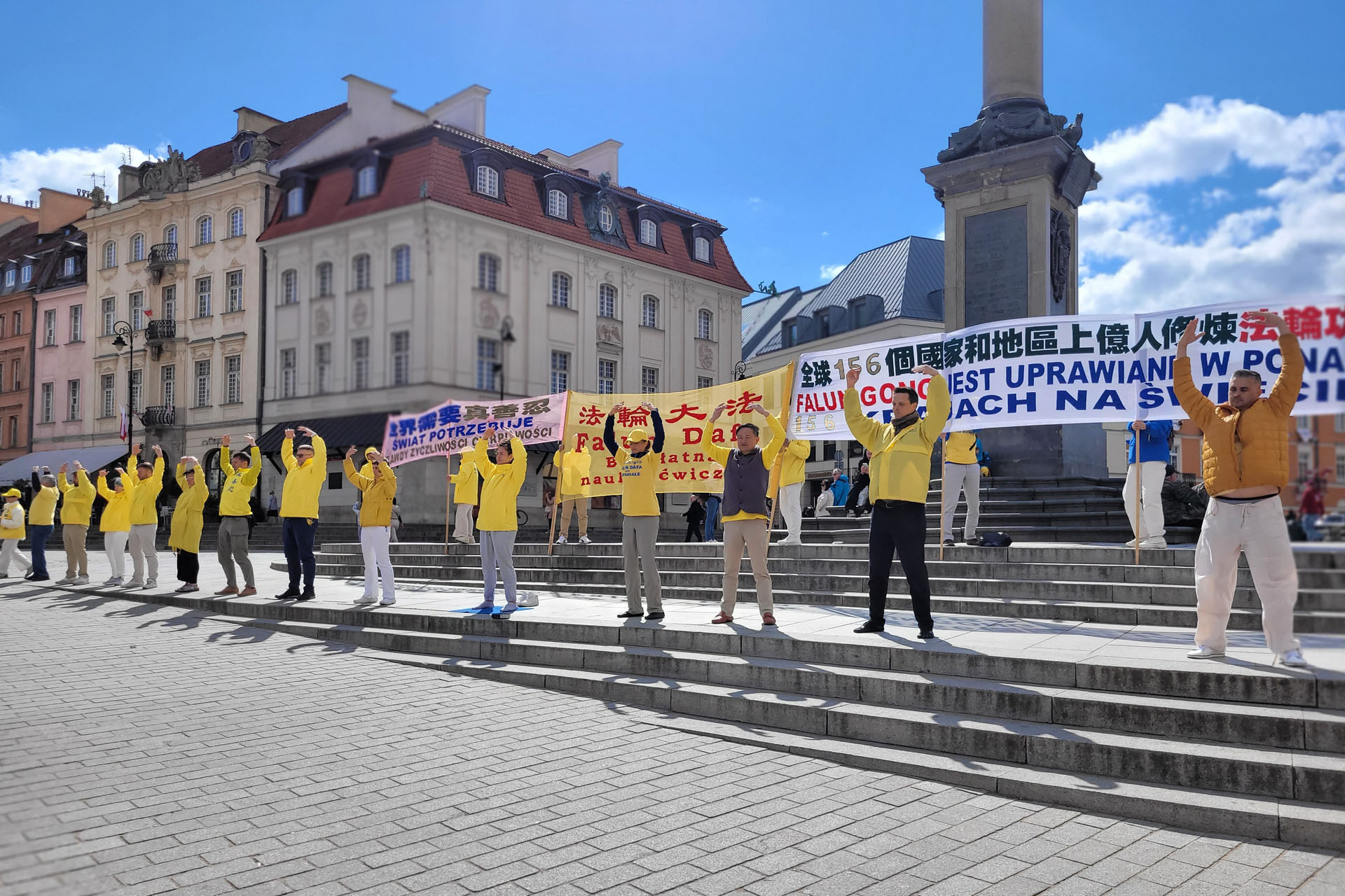 ![]() 圖1:二零二五年五月四日,波蘭法輪功學員在華沙古城廣場集體合照慶祝世界法輪大法弘傳三十三週年並恭祝師父生日快樂! |