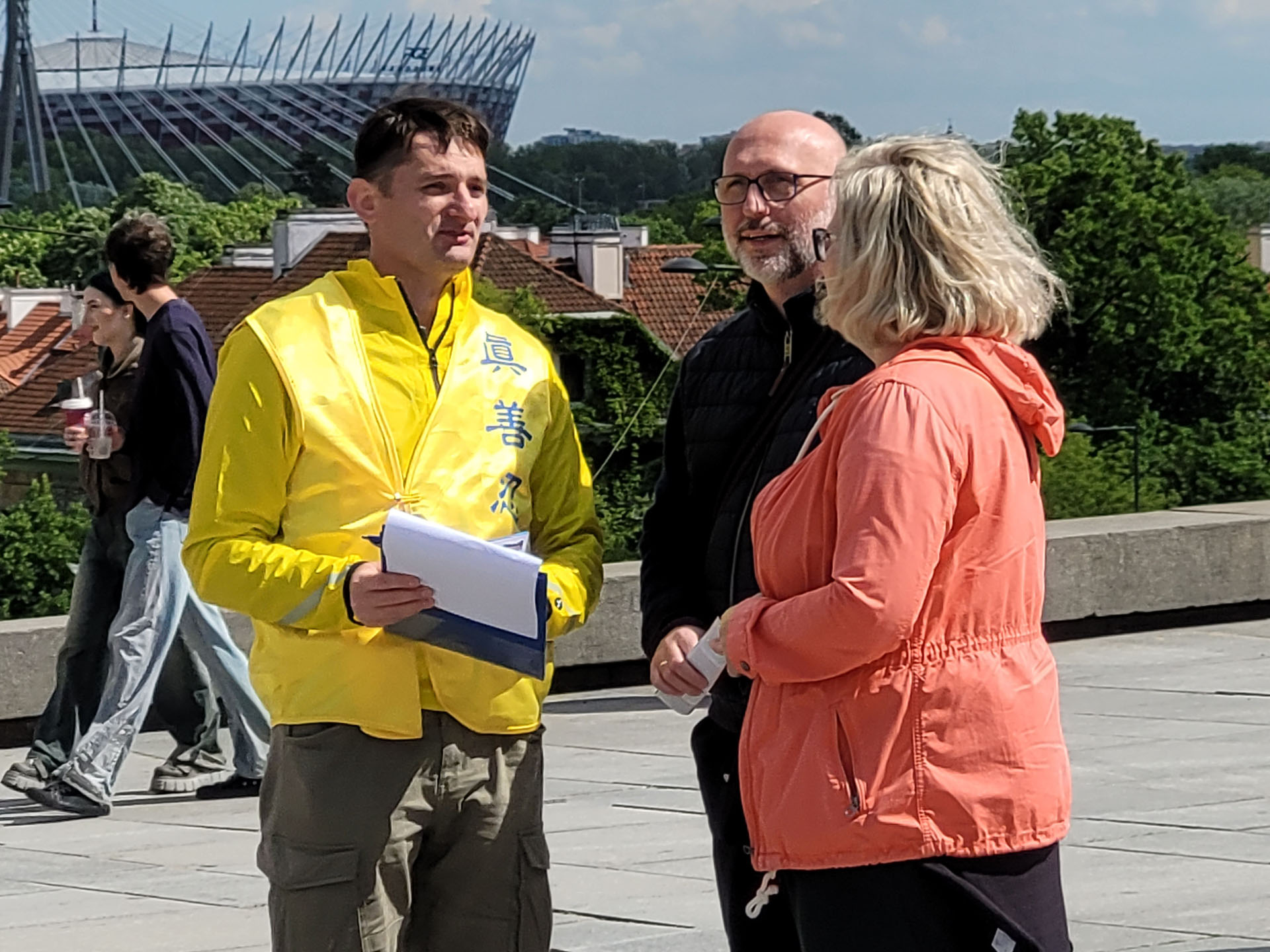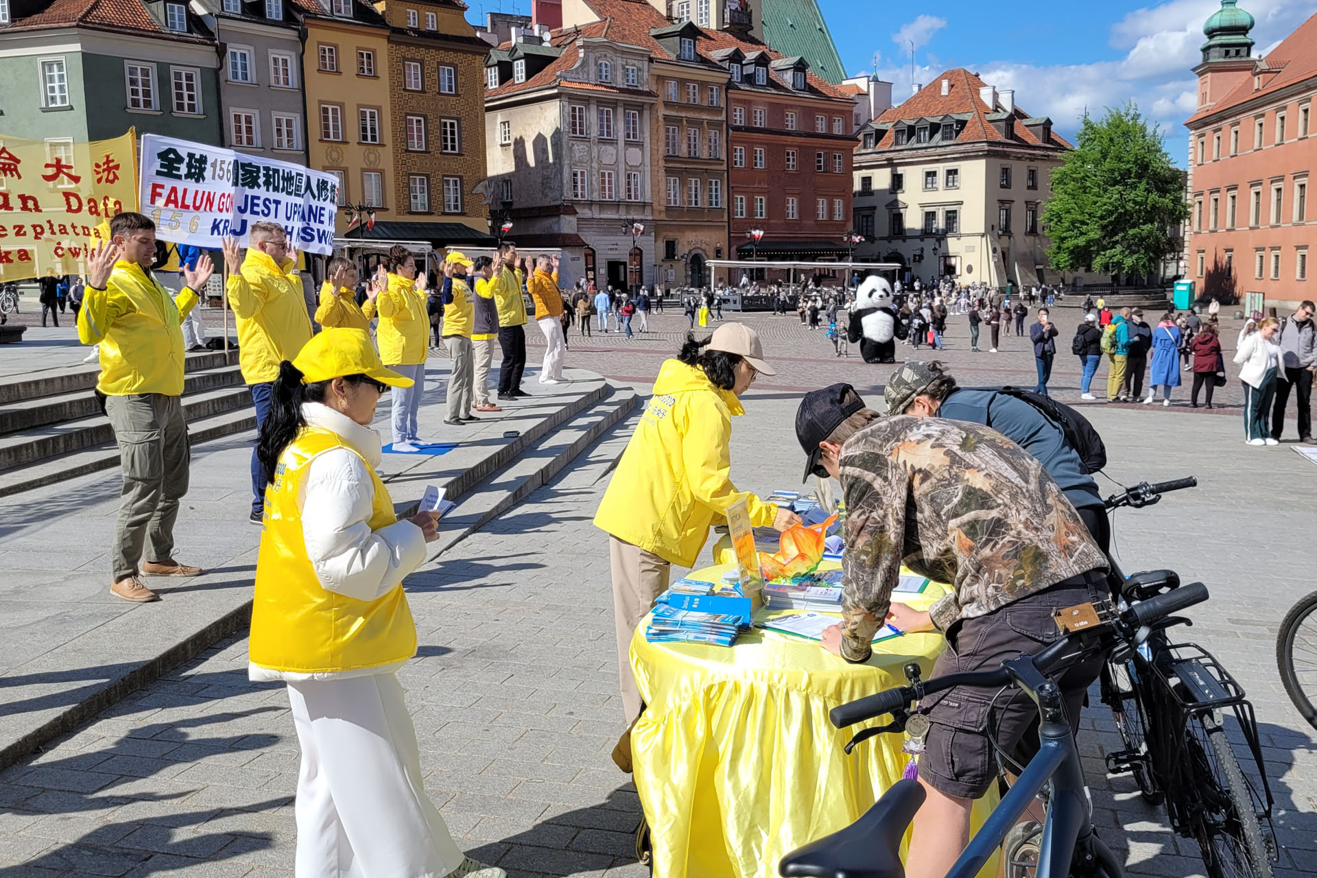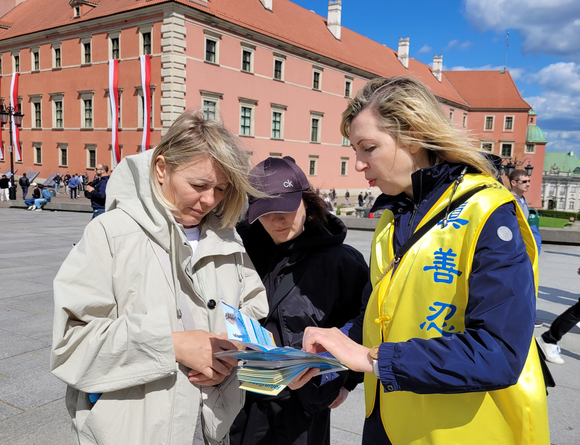 ![]() 圖14:波蘭法輪功學員托梅克(右)在和遊客講真相。 |
