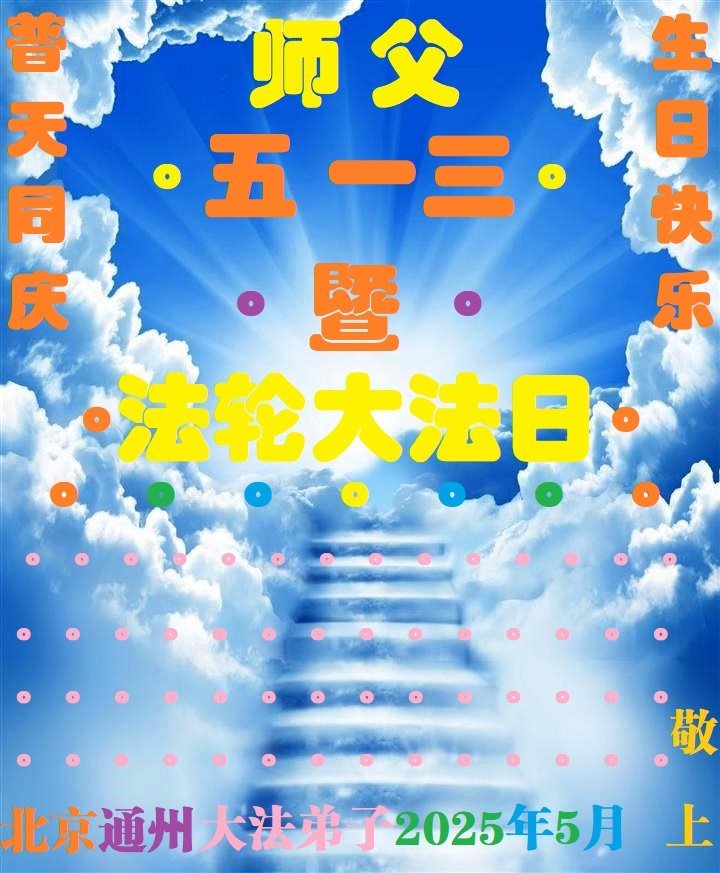 恭祝師尊生日快樂!恭祝世界法輪大法日!在以後的日子裏我們要聽師尊的話。做好三件事。以報師恩。