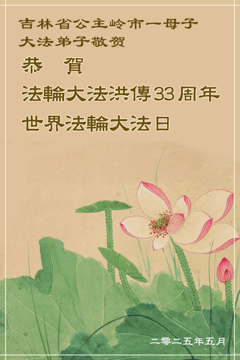 吉林省公主嶺市母子大法弟子敬上