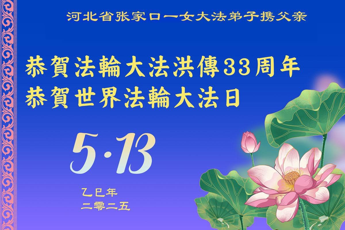 我是一名退黨群眾,我支持家人修煉法輪大法。老父親在修煉大法前,有胃病、心臟病、風濕關節炎,家裏甚麼活都幹不了。後來他聽說鄰村有煉法輪功的,便前往學煉法輪功,並請回了一本《轉法輪》。看書不久後,他就想吃飯了,還能幹點活了。法輪功真神奇!大法師父救了我父親的命,太感謝法輪大法師父了!我們全家七口人恭祝大法師父生日快樂!