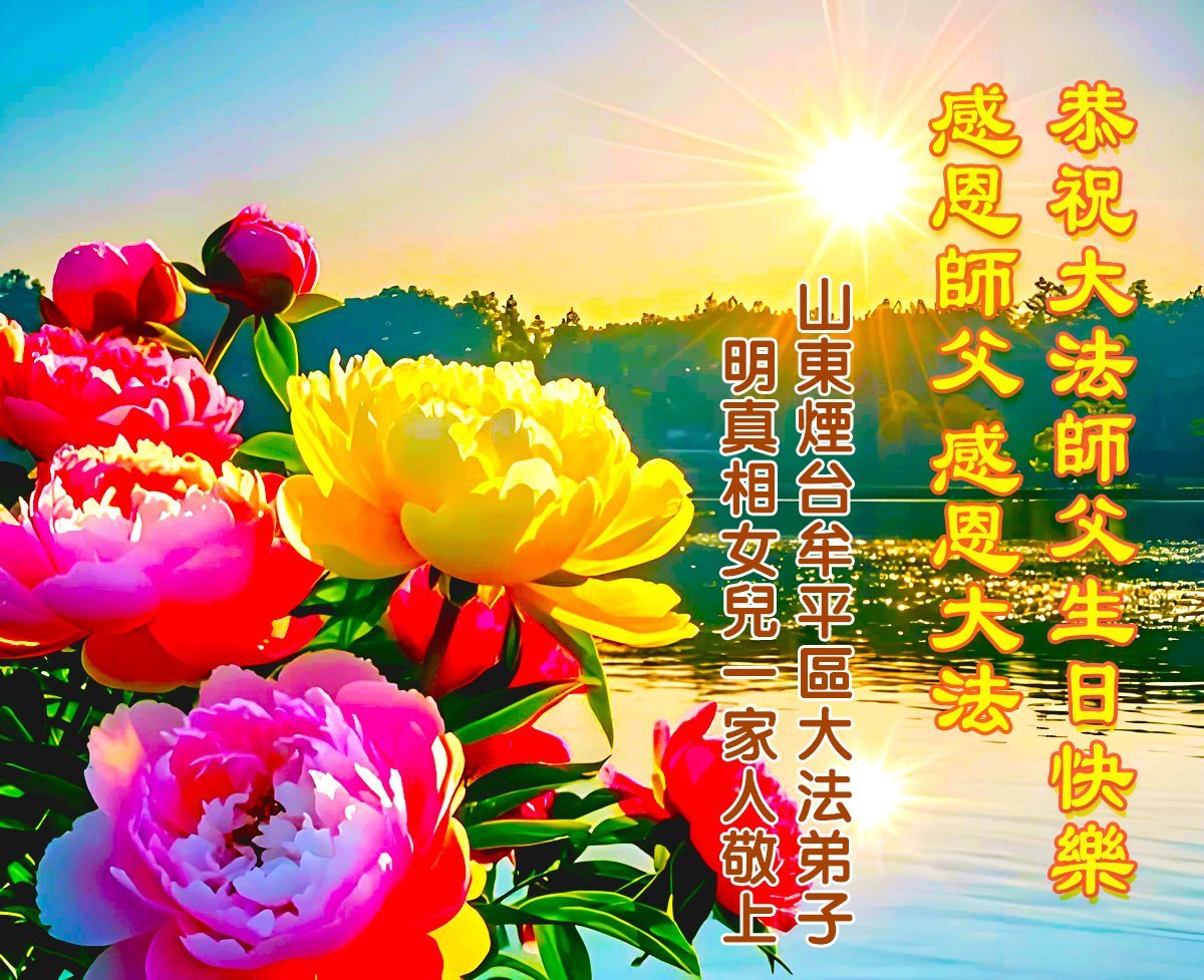 山東省煙台牟平大法弟子明真相女兒一家敬上