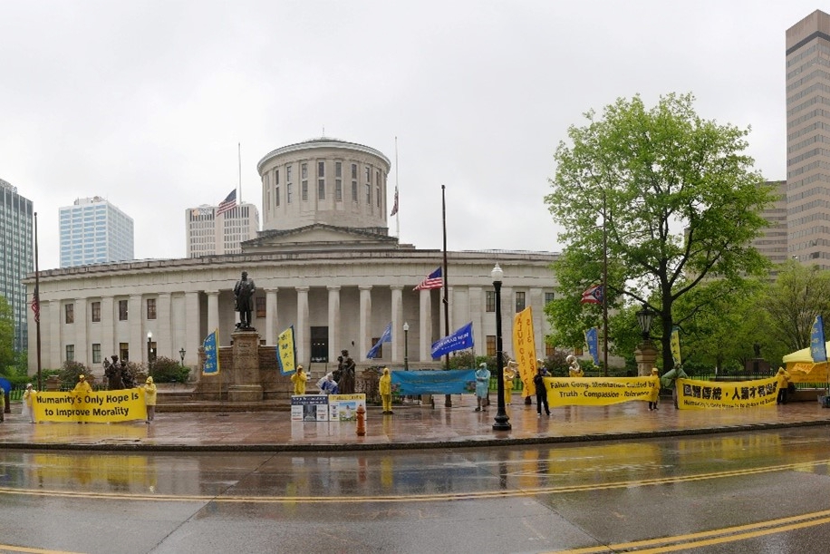 ![]() 圖1:二零二五年五月六日,美國俄亥俄州的法輪功學員在首府哥倫布市舉行集會,慶祝世界法輪大法日。 |