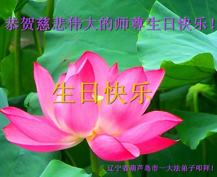 尊敬的師父您好!在一年一度的世界法輪大法日來臨之際,弟子恭祝您生日快樂!「助師正法,救度眾生」是弟子來世的目地,「返本歸真」是弟子必須達到的標準,弟子一定為此而努力,信念不移,初心不改!給眾生不滅的希望!堅定!精進!實修!讓師父欣慰!感恩師父的慈悲苦度!感恩師父無所不在的加持、保護!謝謝師父!叩首再叩首!